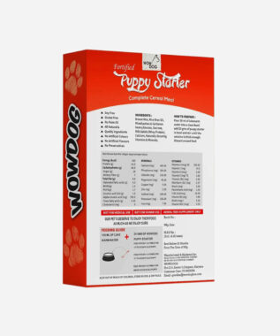 WOW Puppy starter complete cereal meal diet for all breeds. Fortified Puppy Cereal. Enriched with Minerals, Amino Acids, Vitamins, Calcium. It helps to shift puppy from mother’s milk to solid food.