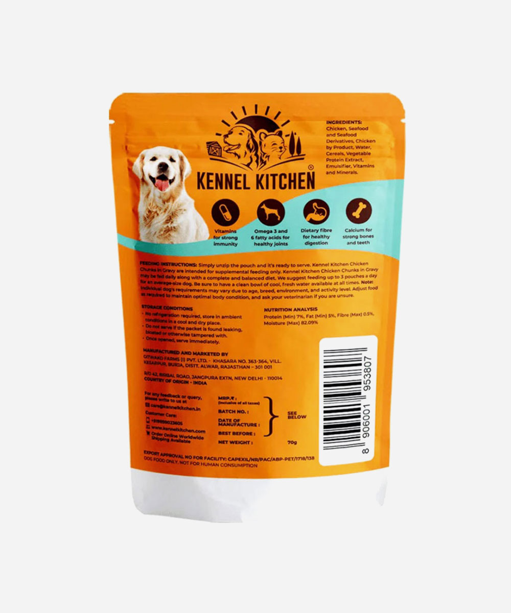 Kennel Kitchen wet dog food is made with real chunks of chicken and chicken liver in a savoury gravy. It’s packed with protein and entirely free from fillers, corn, soy, and wheat.