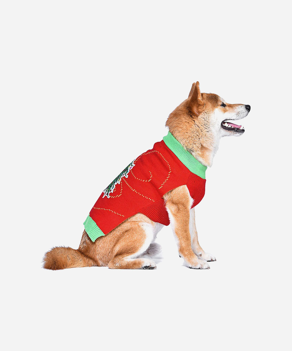 This is a very lovely Christmas sweater. It is made of knitted fabric, soft and comfortable. The use of 3D cutting technology makes pets look less bloated, move freely and feel free.