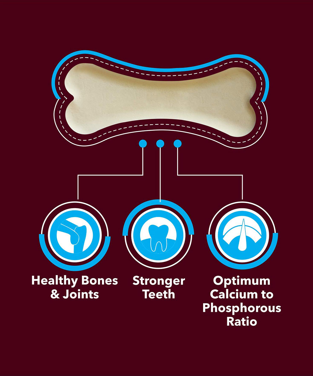 Enriched with essential ingredients like chicken, egg and vegetables combined with Vitamins and Minerals complete all the nutritional need for the growing puppies. A complete and balanced meal.