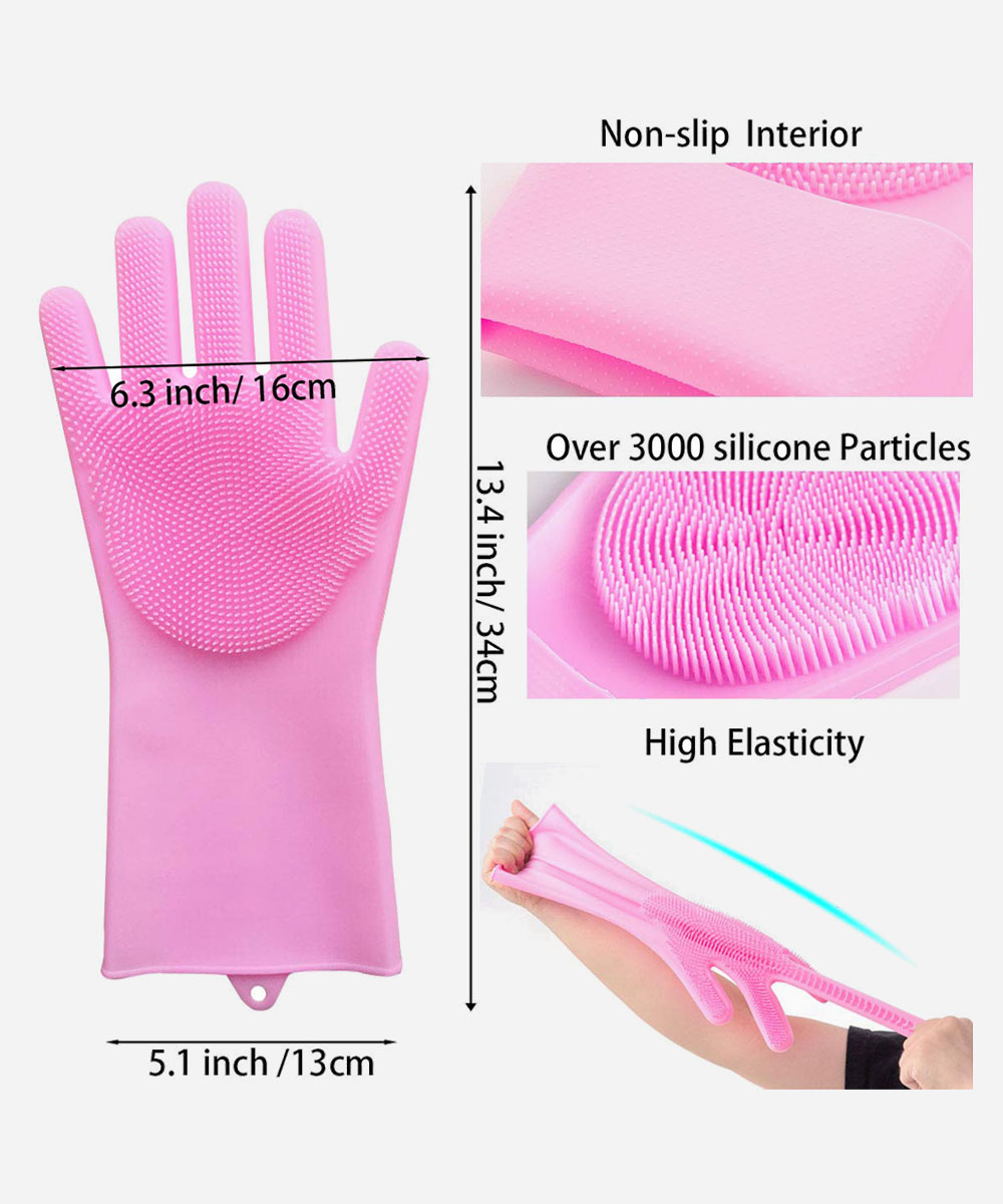 The Magic silicone rubber Gloves can be used for washing dishes, fruit ,vegetable, car, pet bathing, cleaning your bathroom, kitchen ,removing wardrobe dust. Durable and high brushes can easily remove.
